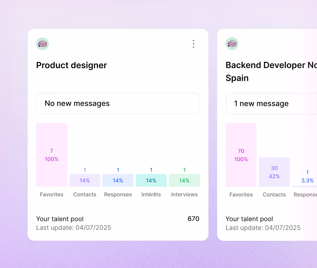 Keep your pipeline organized and stay on top of your outreach. Designed for sourcing teams, freelance recruiters, and talent acquisition leaders.